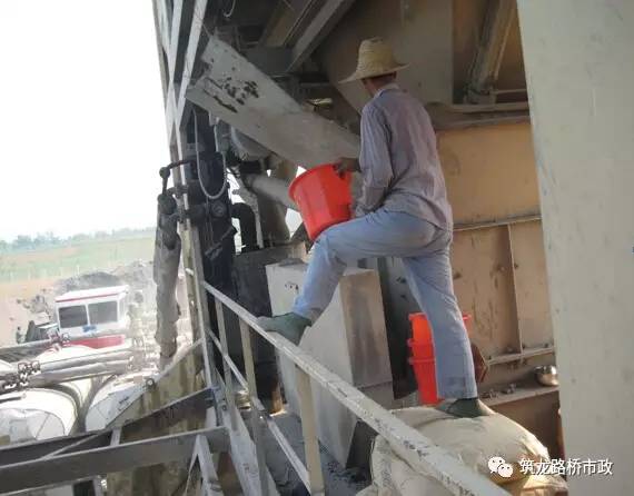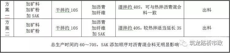 添加集料的同時(shí)將固體溫拌劑投入拌鍋攪拌均勻,盡量采用自動(dòng)稱量添加設(shè)備,也可以采用人工投放方式,但用量必須控制準(zhǔn)確,固體溫拌劑摻量為瀝青用量的3%(外摻法,質(zhì)量比)。如果為人工投放,可預(yù)先準(zhǔn)備好每盤(pán)料用量的容器,提高投放效率,也可預(yù)先稱量好拌和樓每盤(pán)料所需固體溫拌劑用量,分成小袋直接投放。