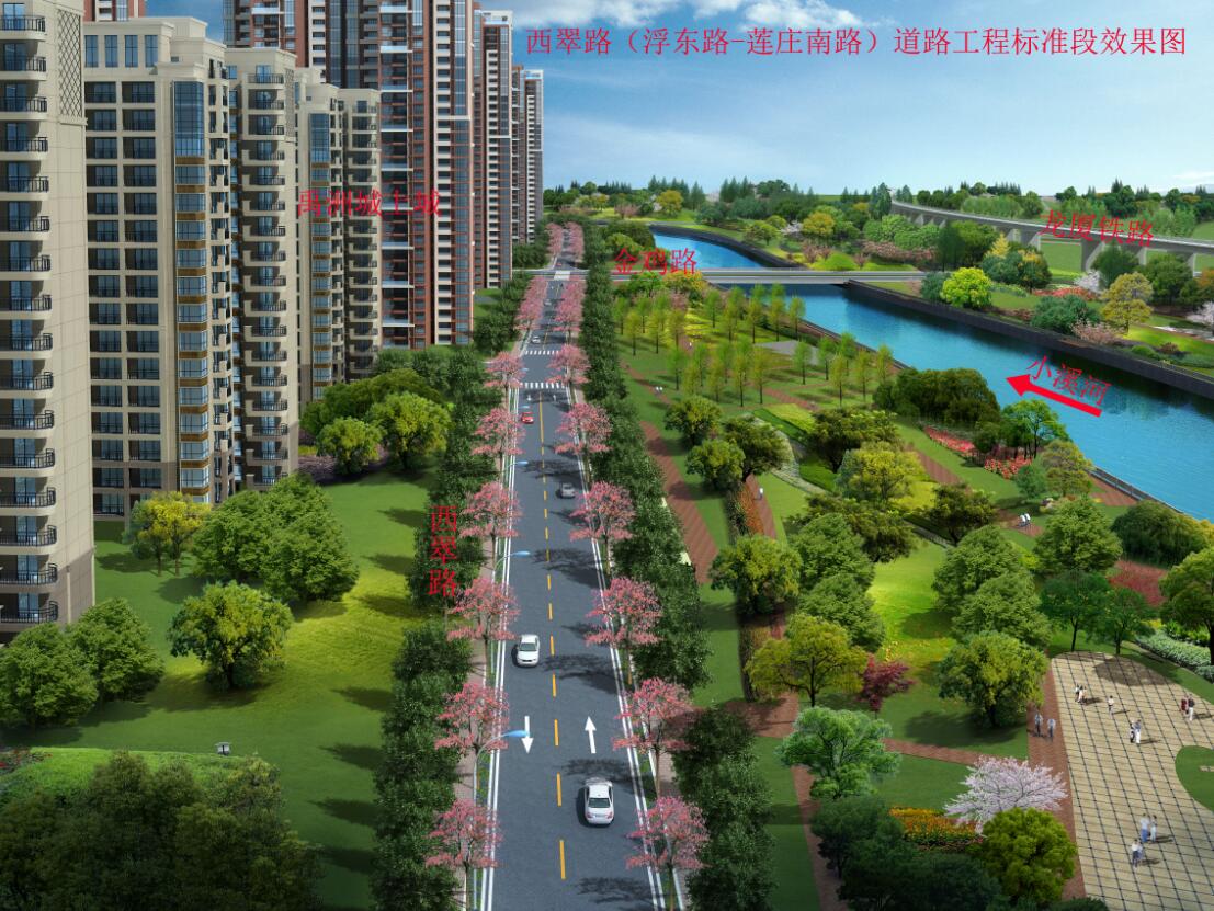 西翠路項目起于浮東路,終于蓮莊南路,全長2129米,寬15米,項目總投資1億元。