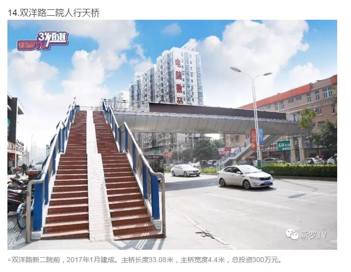年來,市委、市政府加大市政基礎(chǔ)設(shè)施投入,大力推進(jìn)人行天橋建設(shè)。截止2017年底中心城市共興建20余座人行天橋。