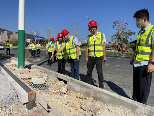 確保天馬西路二期在1015前順利通車,市政集團(tuán)主要負(fù)責(zé)人帶領(lǐng)項(xiàng)目骨干和黨員先鋒隊(duì)員深入項(xiàng)目施工現(xiàn)場(chǎng)開展通車前安全大檢查。